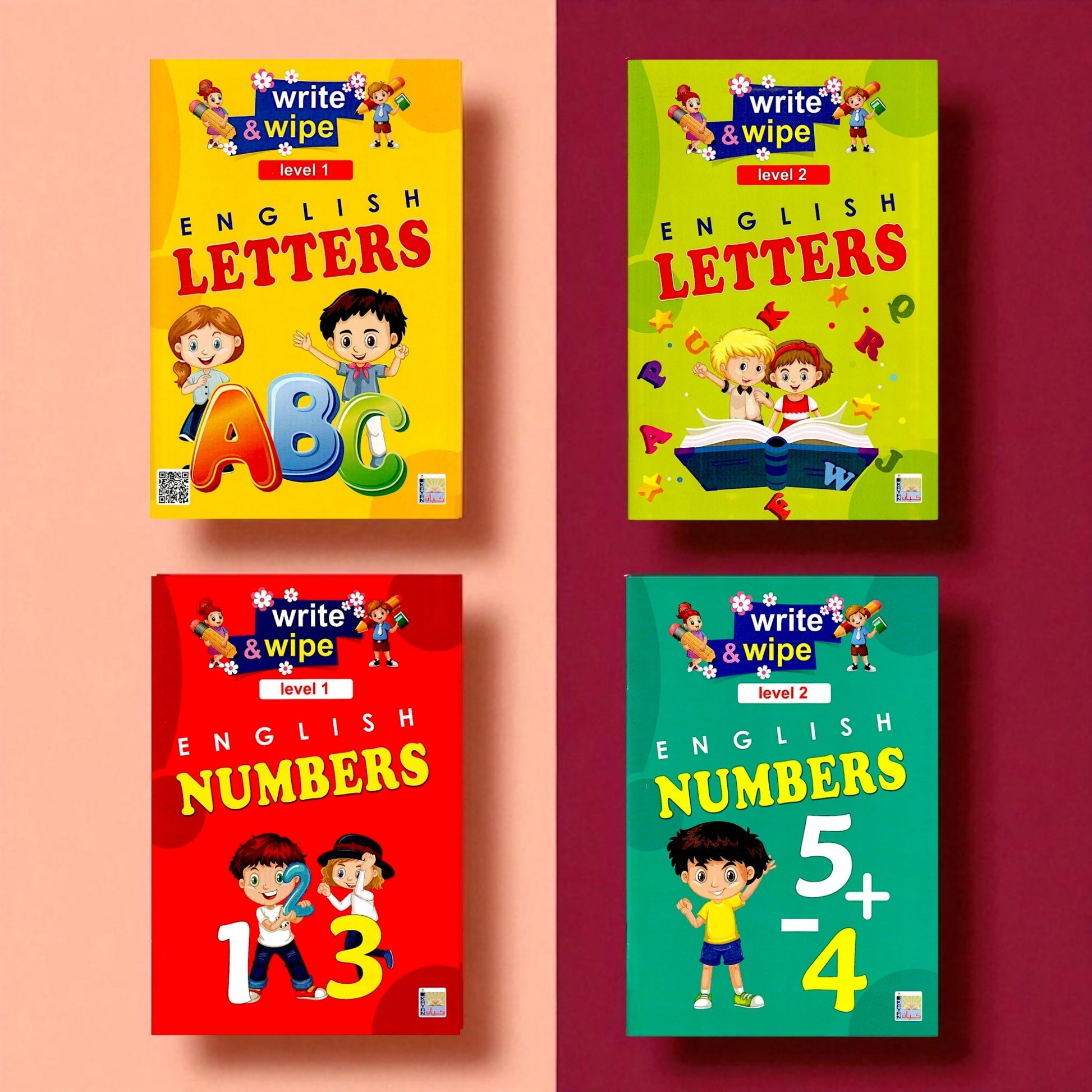 العرض الشامل: مجموعة اكتب وامسح الحروف والأرقام الإنجليزية - 4 كتب