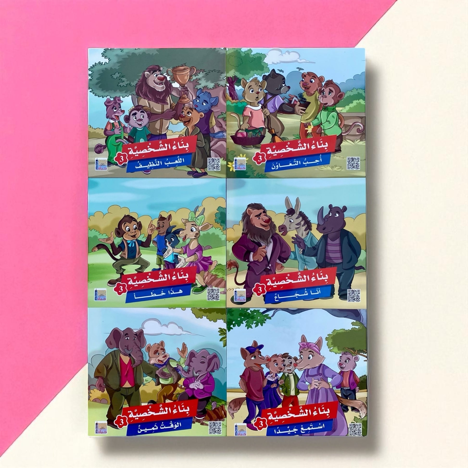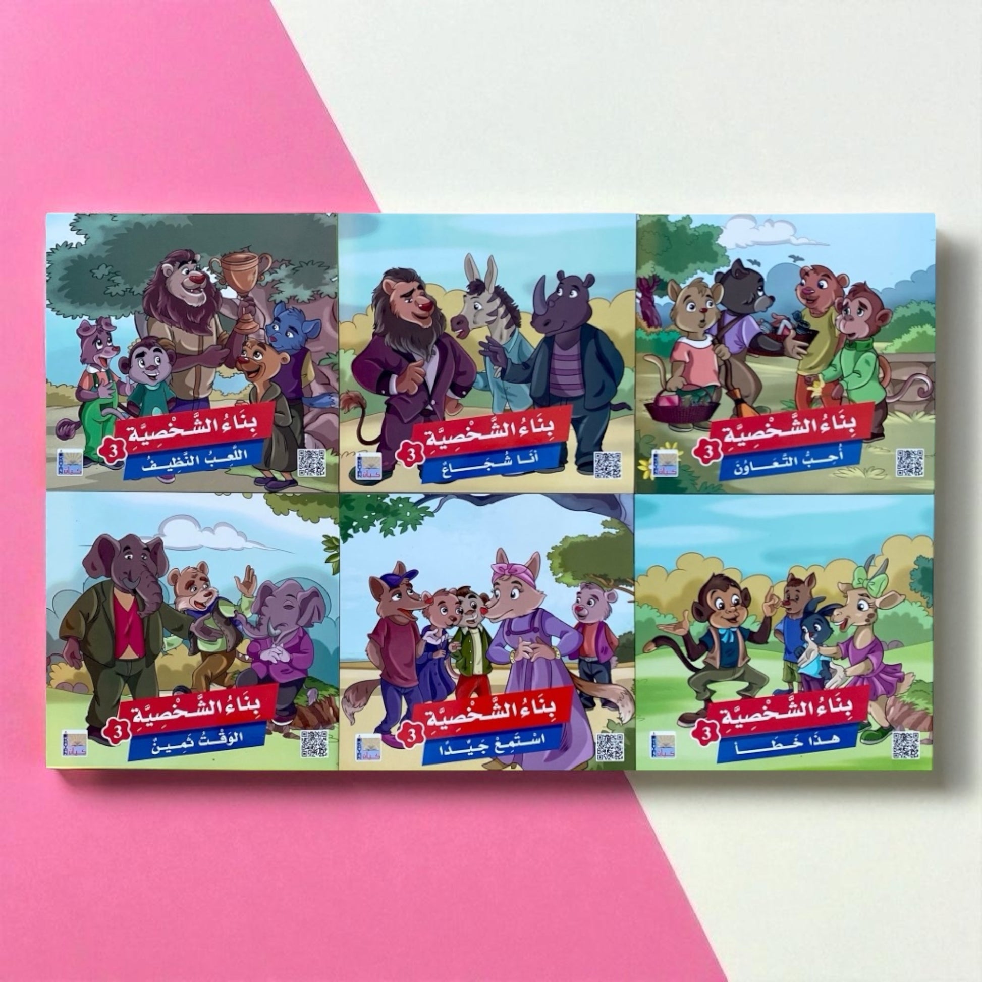 6 كتب ملونة ومصورة مصممة خصيصاً لبناء شخصية الطفل وتطوير مهاراته الاجتماعية والأخلاقية من خلال قصص تفاعلية وممتعة.